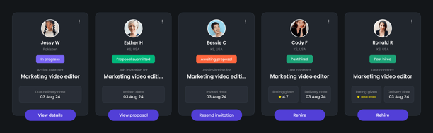 - Rehire Efficiently: Quickly rehire trusted Sellers for new projects using the Rehire button.