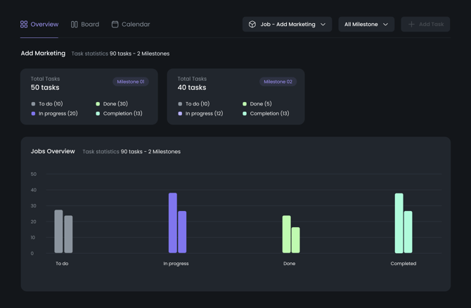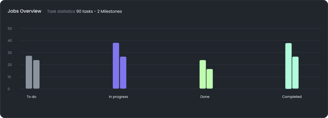 Each bar represents the task count for respective statuses (To Do, In Progress, Done, Completed).- Color-coded: Easily identify task statuses through visual cues.