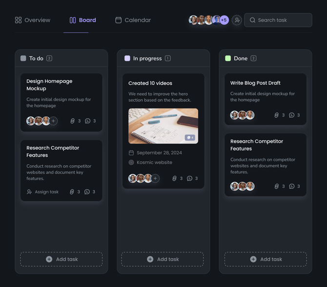 A Kanban-style task management tool that helps visualize tasks by categories (e.g., To Do, In Progress, Done, etc.).